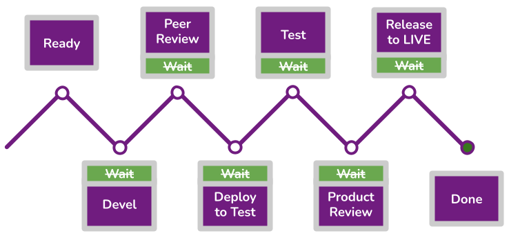 The silo’ing (Siloing) of people is one prevalent cause of Manufacturing Purgatory – where work items are left in a waiting state, until a resource becomes available to work on it (i.e. to add value). Manufacturing Purgatory is a lonely place; the longer something rests there, the less value it has, the more it interferes with other work items, and the more that entropy sets in. Continuous practices are commonly used to mitigate Manufacturing Purgatory.