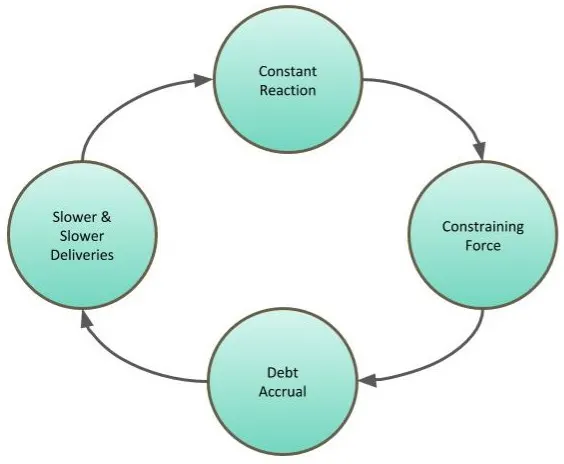 Paradoxically, Constant Reaction has the power to undo the very qualities you may be aspiring to; e.g. your desire to support short-term TTM and ROI needs pollutes your longer-term TTM and ROI aspirations. Watch how often you sacrifice quality for delivery - it's almost always the first to face the chop, but often has the greatest long-term impact.